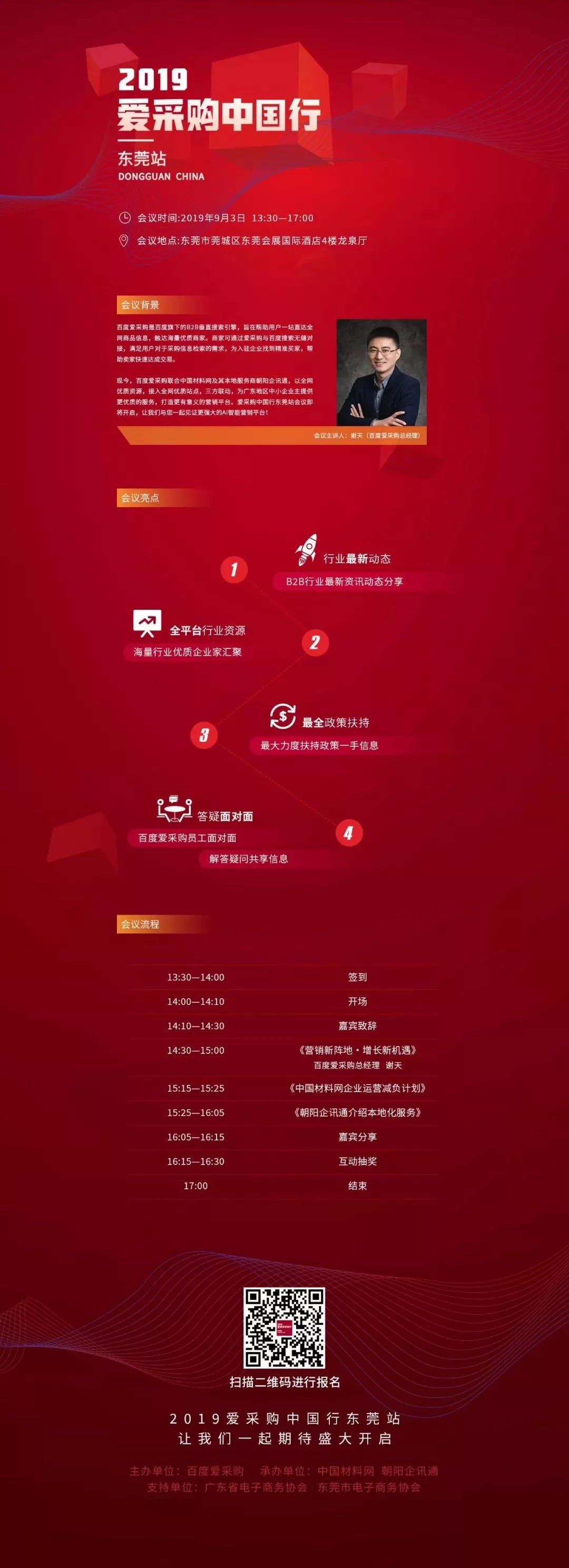 9月3日,百度愛采購(gòu)將聯(lián)合朝陽(yáng)企訊通、中國(guó)材料網(wǎng),在東莞會(huì)展國(guó)際酒店舉辦行業(yè)峰會(huì),屆時(shí)將由百度愛采購(gòu)總經(jīng)理謝天給大家分享新的機(jī)遇,還有幸邀請(qǐng)廣東商會(huì)和東莞商會(huì)、中國(guó)材料網(wǎng)和朝陽(yáng)企訊通的主要負(fù)責(zé)人到場(chǎng)。